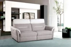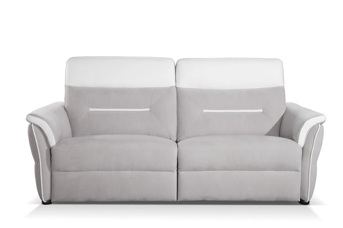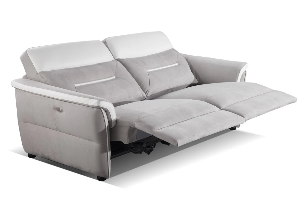 Stof + leder, Stof wave 605 + leder royal 30 bianco neve, 3-zit met 2 elektrische relaxen
