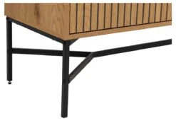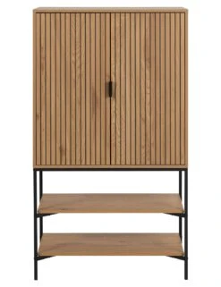 Deze bar JAIPUR laat zien hoe het moet. Met zijn onberispelijke, minimalistische look is het meer dan alleen een plek voor je spullen – het zal de toon zetten in elk huis. Kijk maar naar die lamellenfronten met de elegante handgrepen in hetzelfde ruwe gepoedercoate metaal als de basis. De kast is voorzien van verstelbare planken om aan je behoeften te voldoen. Combineer het met de dressoir JAIPUR.