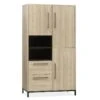 De prachtige bar TRENTINO 131 cm heeft 3 deuren. Met zijn kleur old teak en matzwarte details, past hij makkelijk in elk modern interieur.