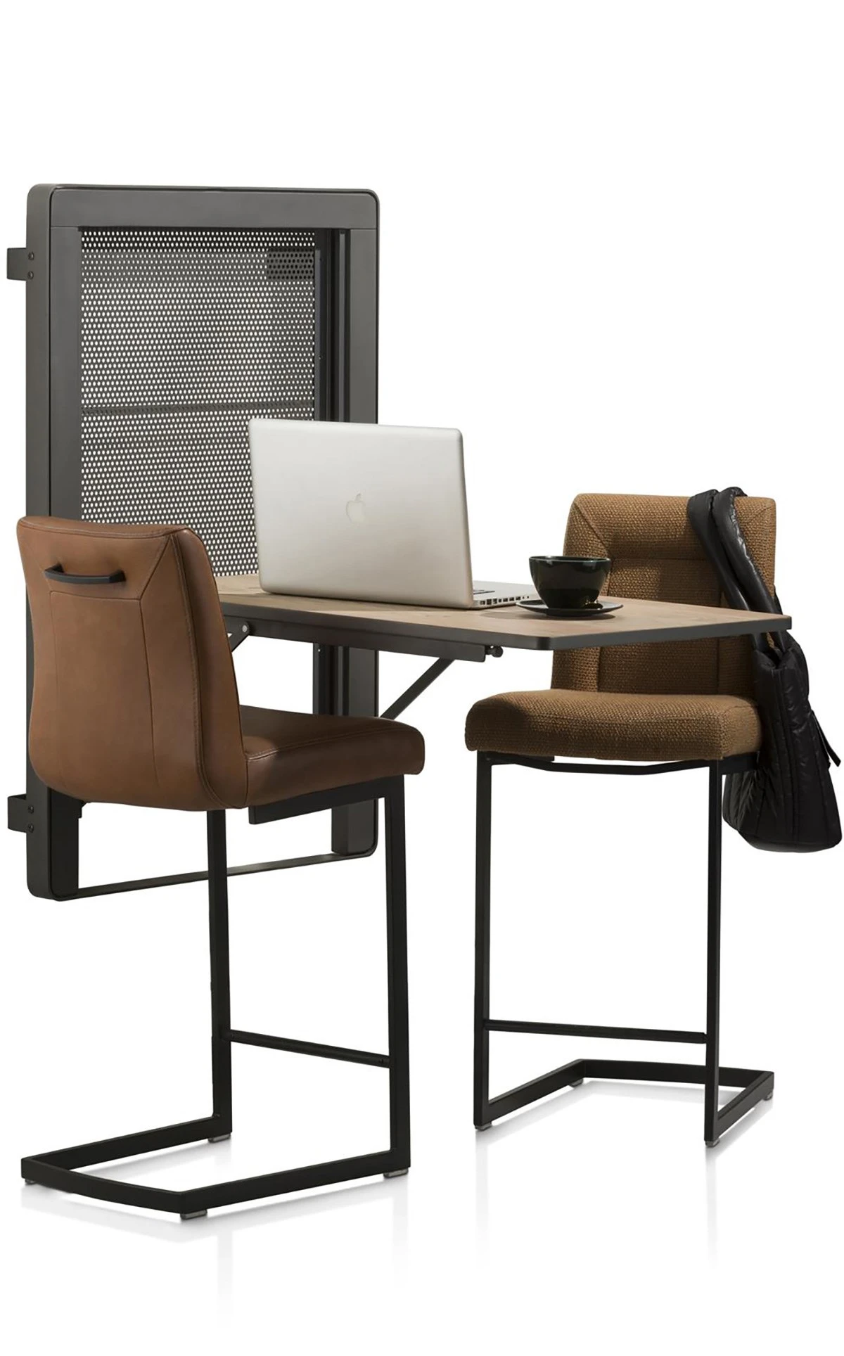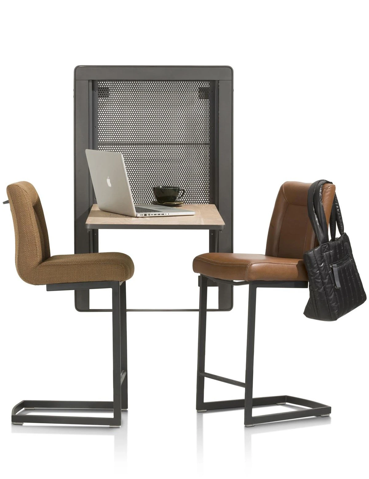 Leuke uitklapbare bartafel ROSETTA in metaal en hout. Handig voor kleine ruimtes!