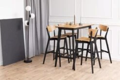 Ga terug naar eenvoud met de barttafel ROXBY. Deze tafel is perfect om je kleine ruimte optisch te vergroten. De tafel ROXBY heeft een modern design en de houten afwerking met zwarte poten is gemakkelijk te combineren met decoratie.