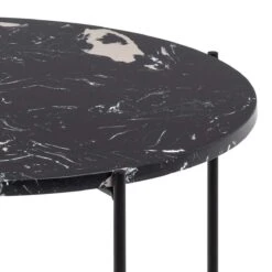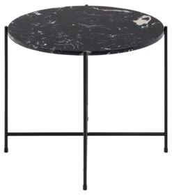 Met een zwart marmeren tafelblad is deze bijzettafel AVILA Ø52 misschien klein, maar zeker groots. Om de look compleet te maken staat het ronde blad op een metalen onderstel. Een dergelijke bijzettafel is zonder twijfel een krachtig decorelement in elk soort interieur.