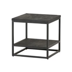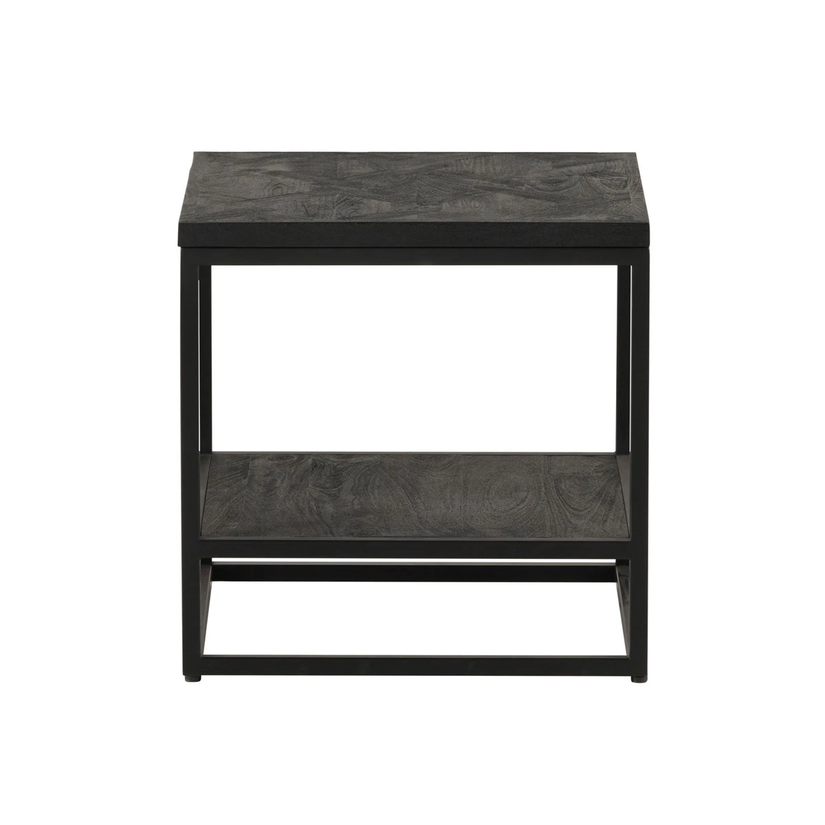 Leuke bijzettafel NEWCASTLE gerealiseerd in massief zwart mangohout gecombineerd met een zwart metalen frame.