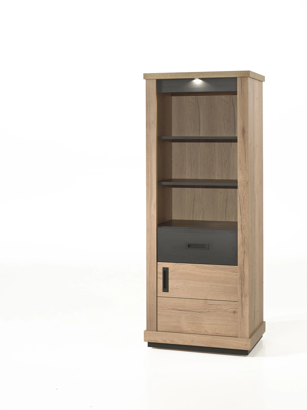 Prachtige boekenkast uit de collectie DAVOS ! Vervaardigd uit melamine Halifax golden brown, dit meubel voldoet wat design betreft volledig aan de huidige tendens ! Met de LED verlichting inbegrepen in het bovenblad maak je het direct stijlvol en gezellig in jouw interieur !