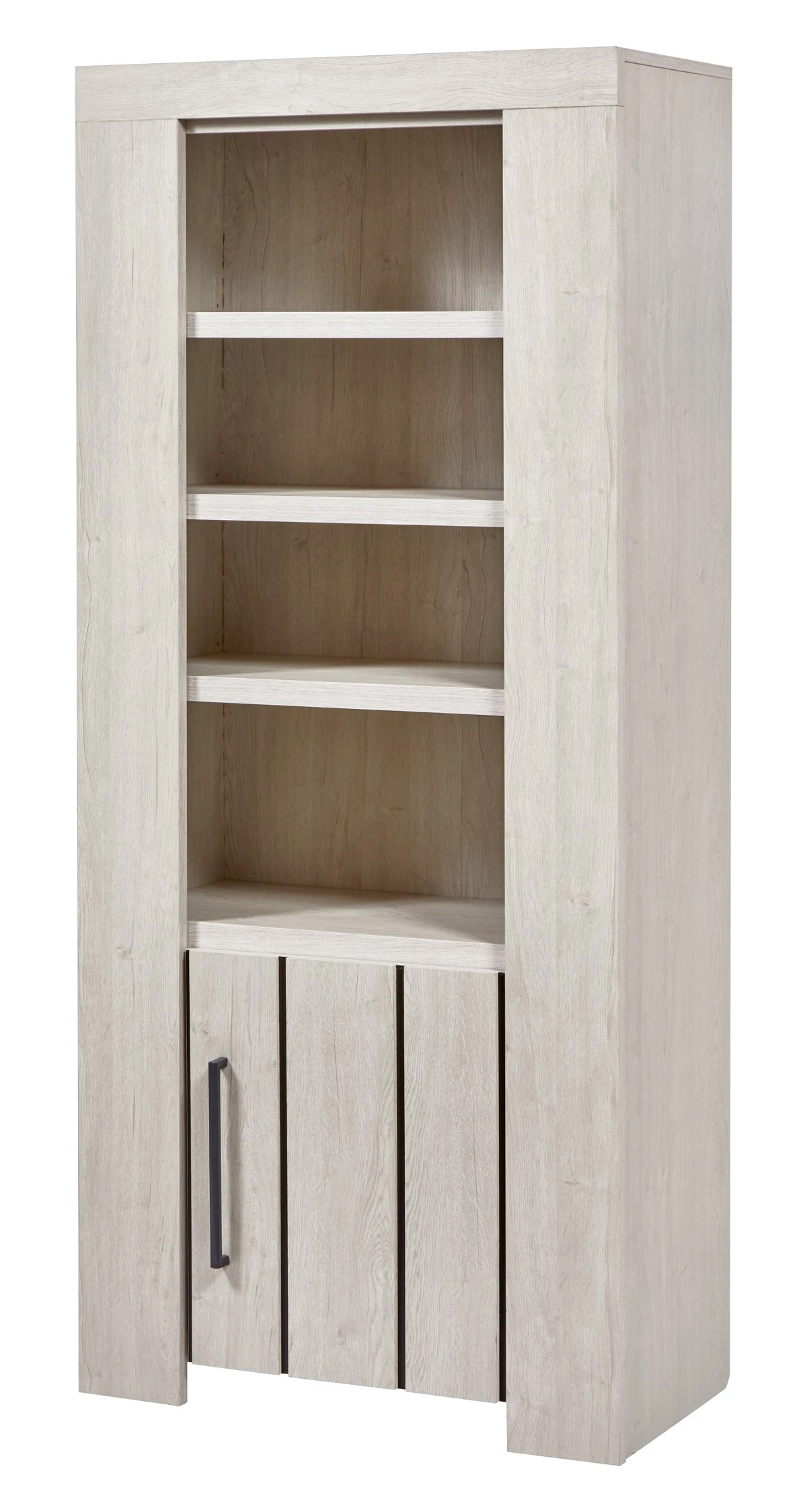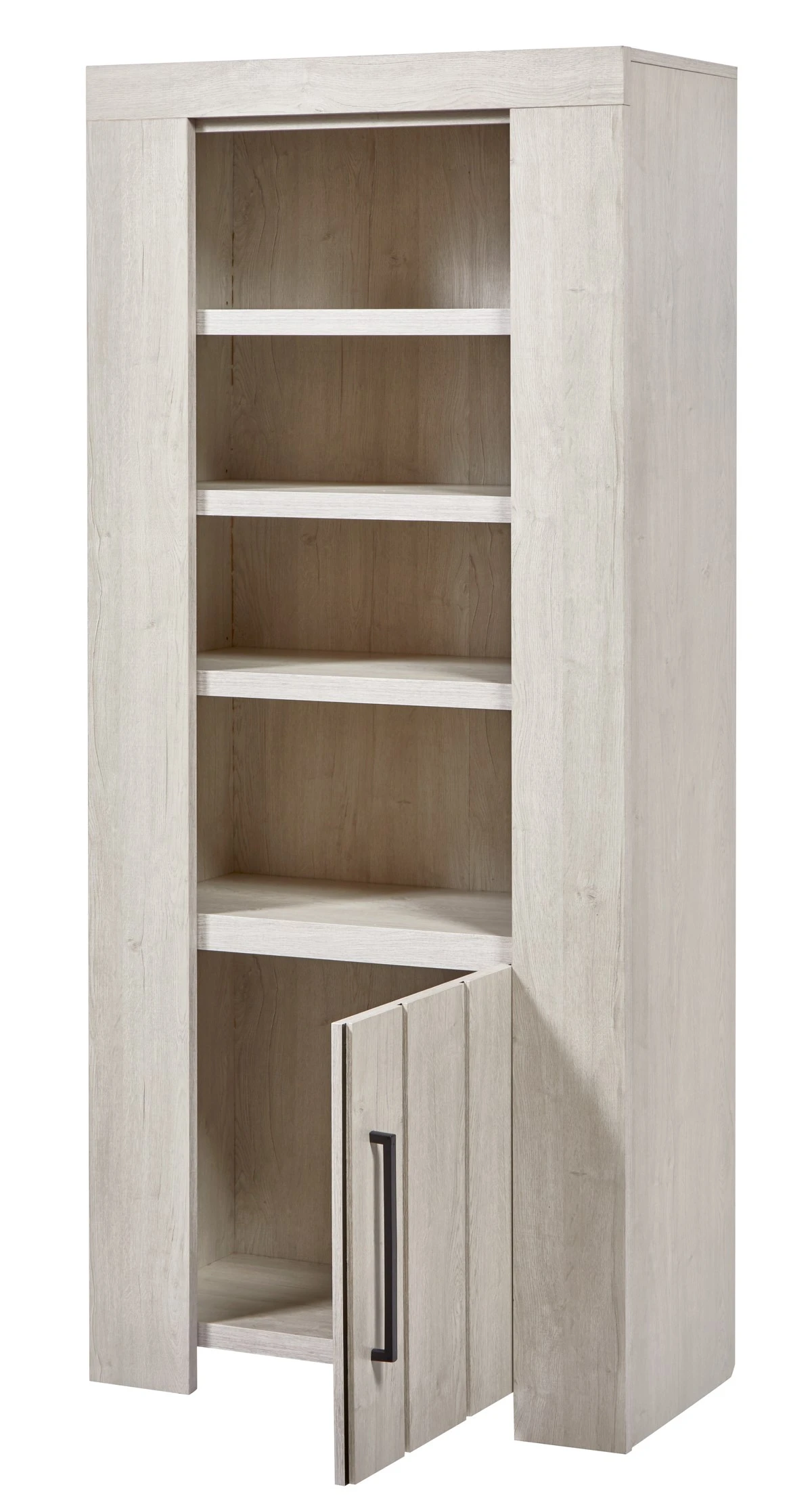 Leuke boekenkast uit de woonkamercollectie GILLES. De kolomkast is gerealiseerd in decor imitatie wit eikenhout. Deze lichte kleur zorgt er bovendien voor dat de woonruimte groter zal lijken gezien deze het natuurlijk licht weerkaatst. Ideaal dus!
