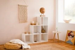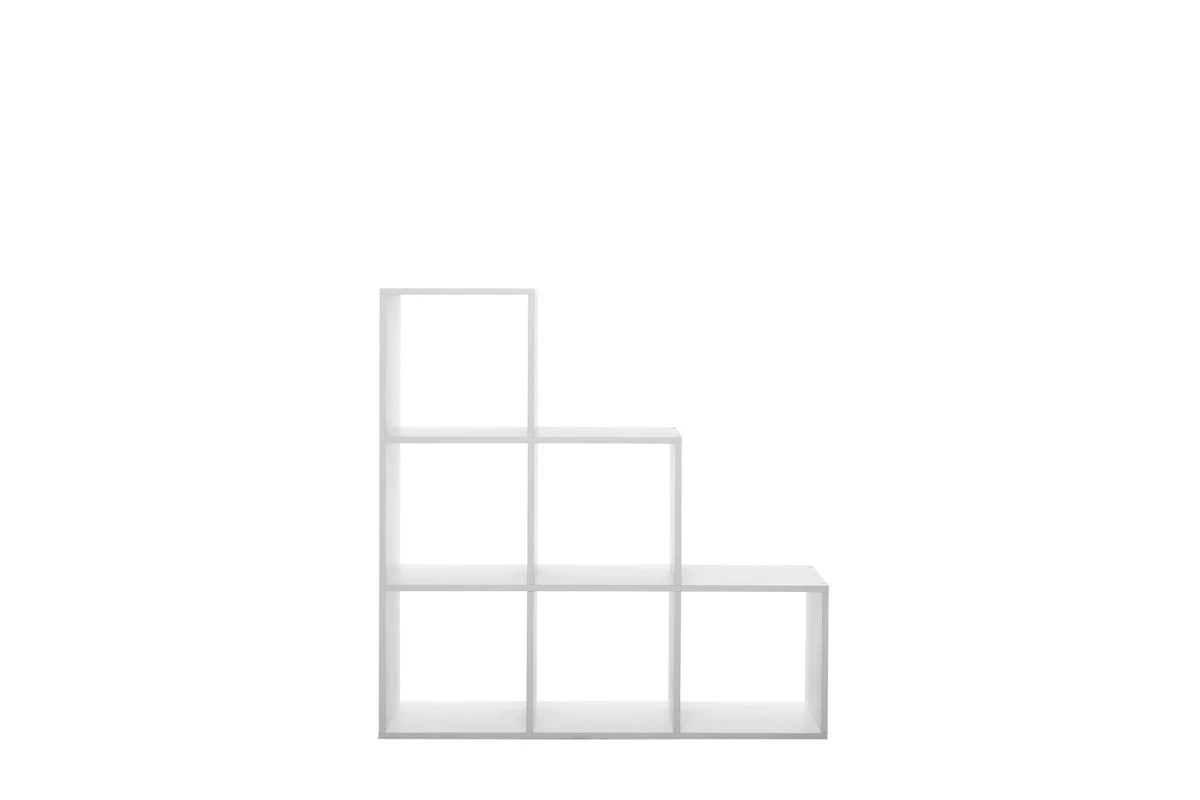 De boekenkast UDINE “Trap” in wit decor heeft 6 vakken. Je kun jouw decoratieve voorwerpen en boeken efficiënt organiseren. Deze boekenkast kan gecombineerd worden met onze opbergboxen.