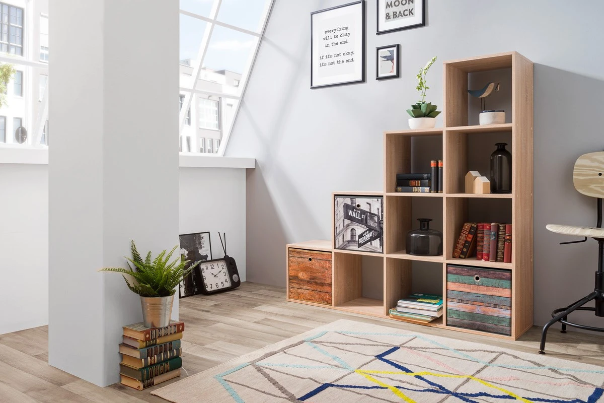 De boekenkast UDINE “Trap” in eik sonoma decor heeft 10 vakken. Je kun jouw decoratieve voorwerpen en boeken efficiënt organiseren. Deze boekenkast kan gecombineerd worden met onze opbergboxen.
