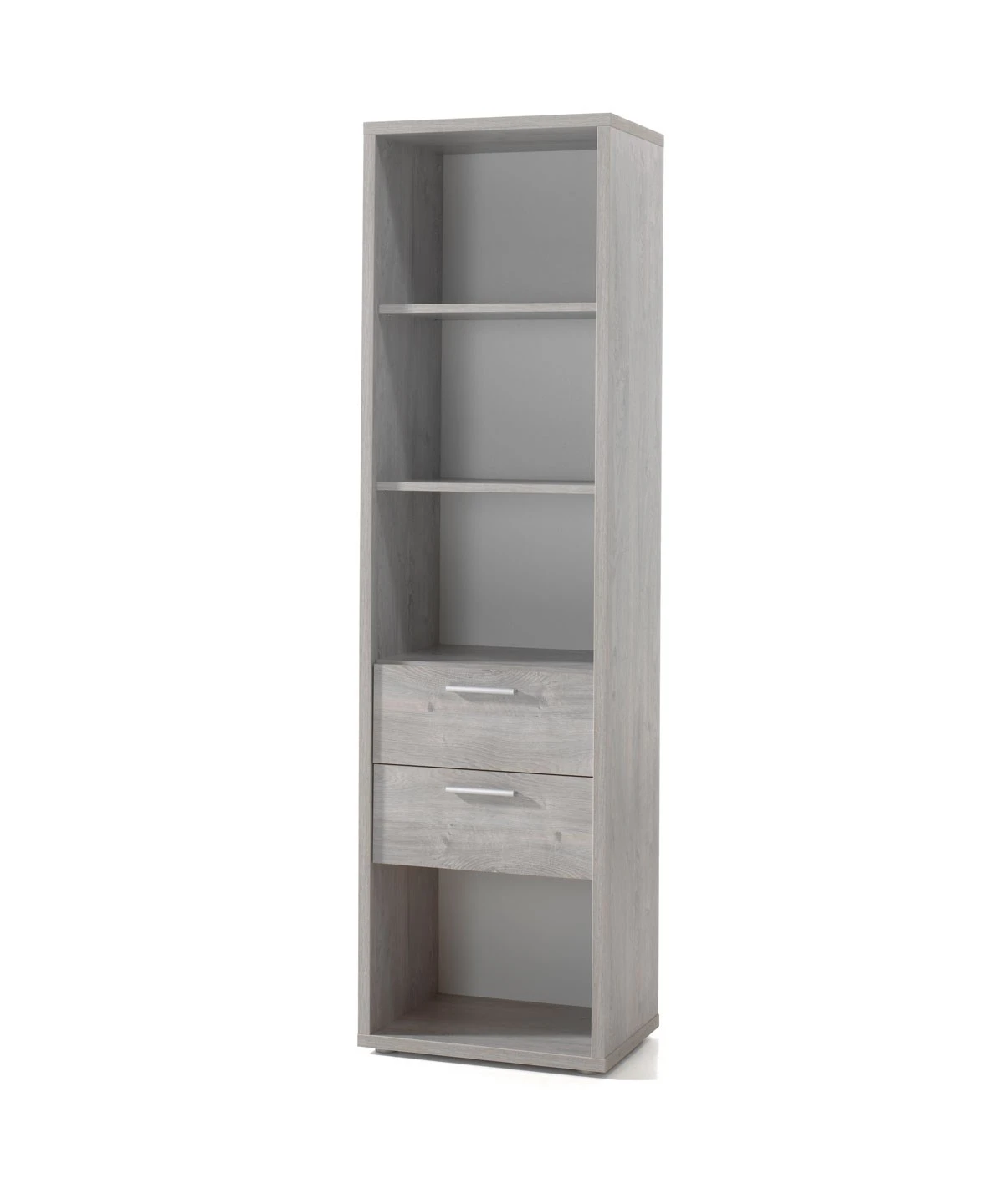 Deze praktische boekenkast, voorzien van 2 lades en 4 schappen, behoort tot de moderne en elegante baby- & kinderkamer VIC, gerealiseerd in decor imitatie grijs eikenhout. Combineer de boekenkast Vic met andere meubels uit dezelfde serie.