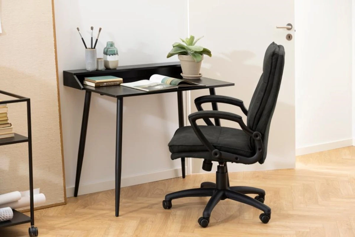 De bureaustoel BRAD in stof kleur antraciet is tijdloos en zorgt voor een ongekend zitcomfort aan je bureau.