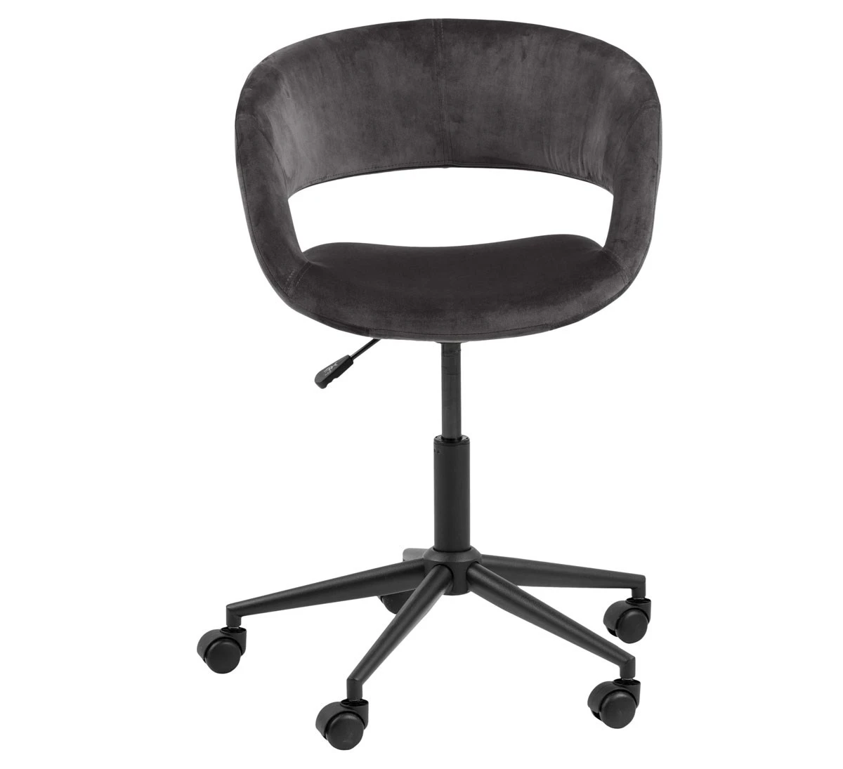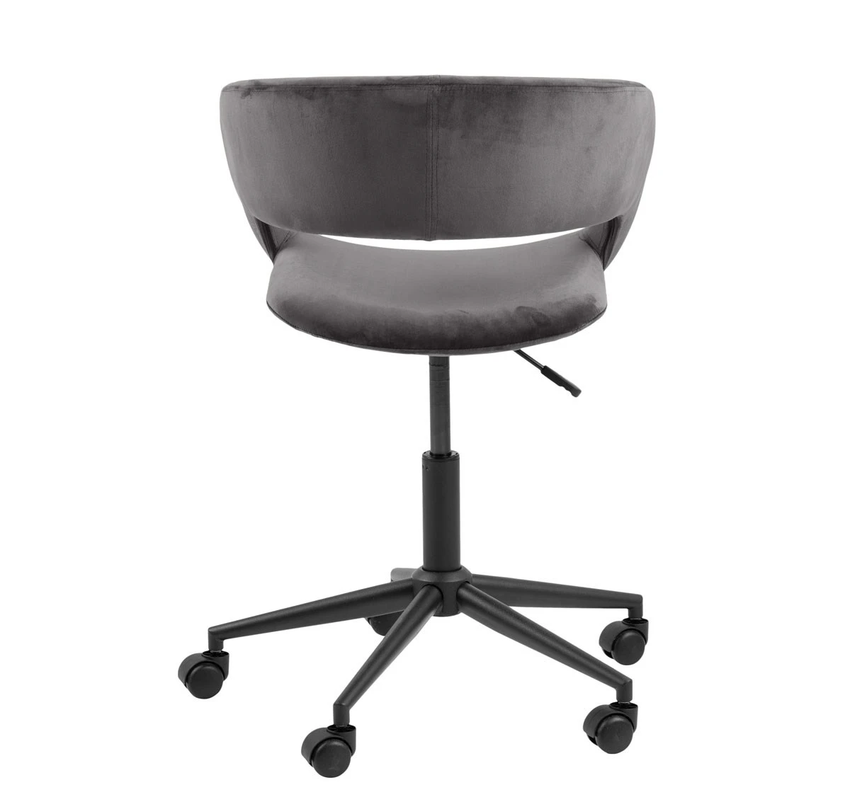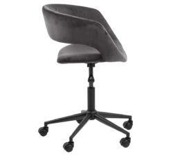 Ga voor de stijlvolle en fluwelen bureaustoel GRACE. De mooie donkergrijze kleur is een extra toevoeging aan jouw interieur. En zit daarnaast ook nog eens super comfortabel door de ronding in de rugleuning en super wendbaar door de wieltjes eronder.
