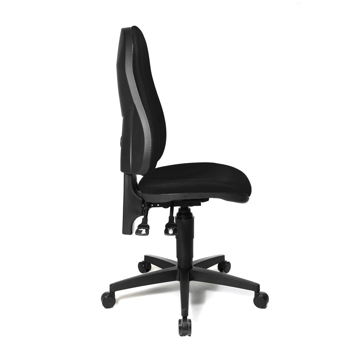 De bureaustoel POINT 25 in zwarte stof heeft een hoge rugleuning en een comfortable zitting. Het grootste voordeel van deze stoel is het feit dat deze stoel de bewegingen van de rug volgt en zo steeds in contact blijft met je rug. Zoals alle bureaustoelen ook in hoogte verstelbaar.