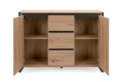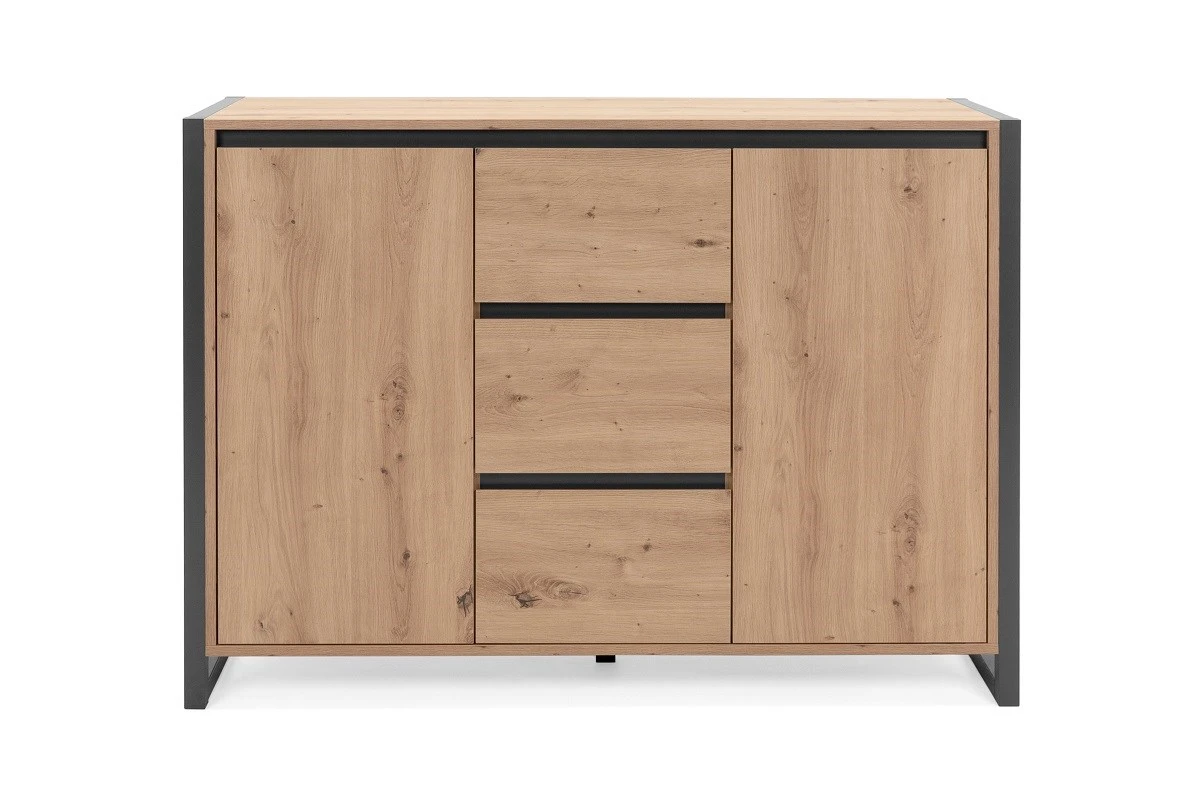 in industriële stijl is gerealiseerd in hout decor kleur antraciet. Mooi en trendy! Dankzij zijn 3 lades en 2 deuren biedt DENVER je voldoende praktische opbergruimte.