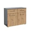 Glas/Papier decor, Eikenhout + grijs glas (582), 130 cm
