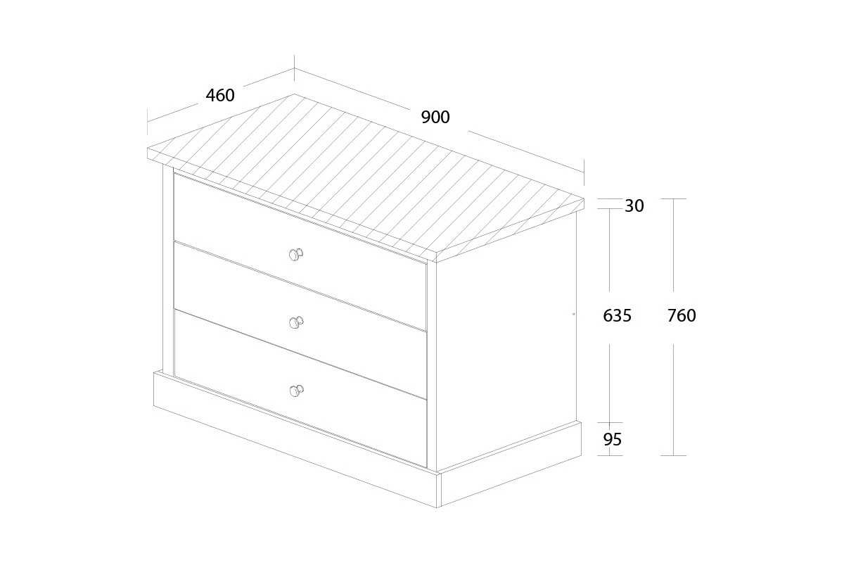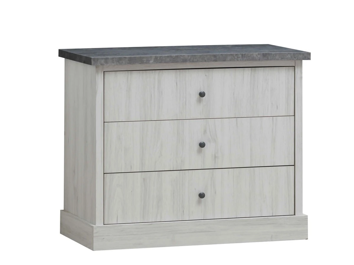Commode met 3 ruime lades in decor imitatie hout die behoort tot de slaapkamercollectie EMMA. Combineer de praktische commode Emma met andere meubelen uit dezelfde serie.