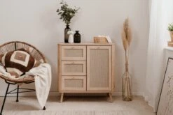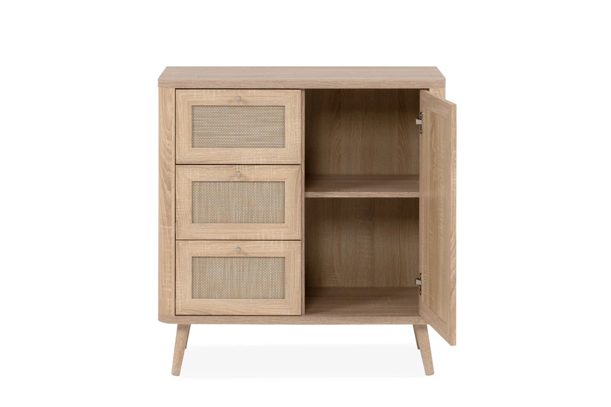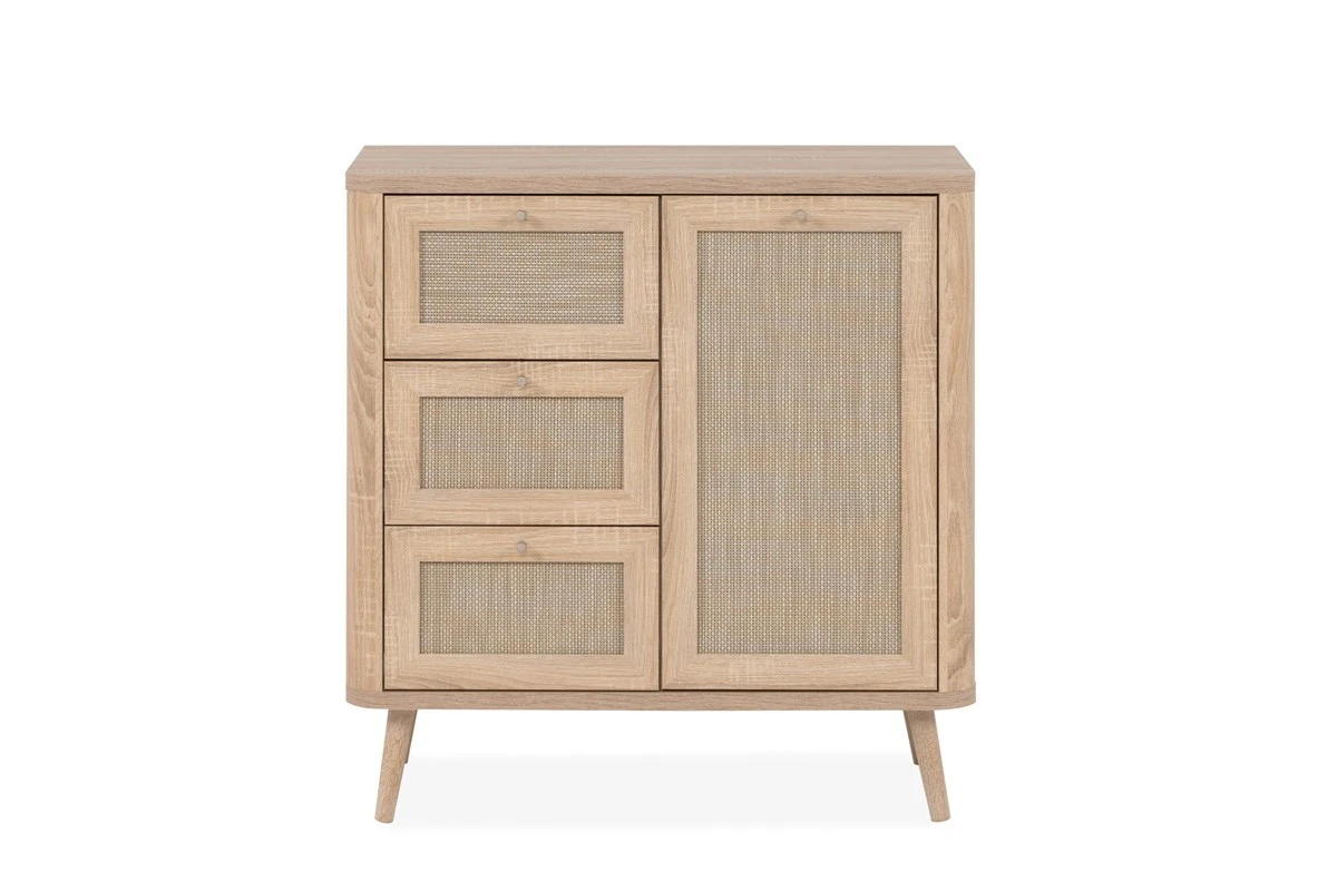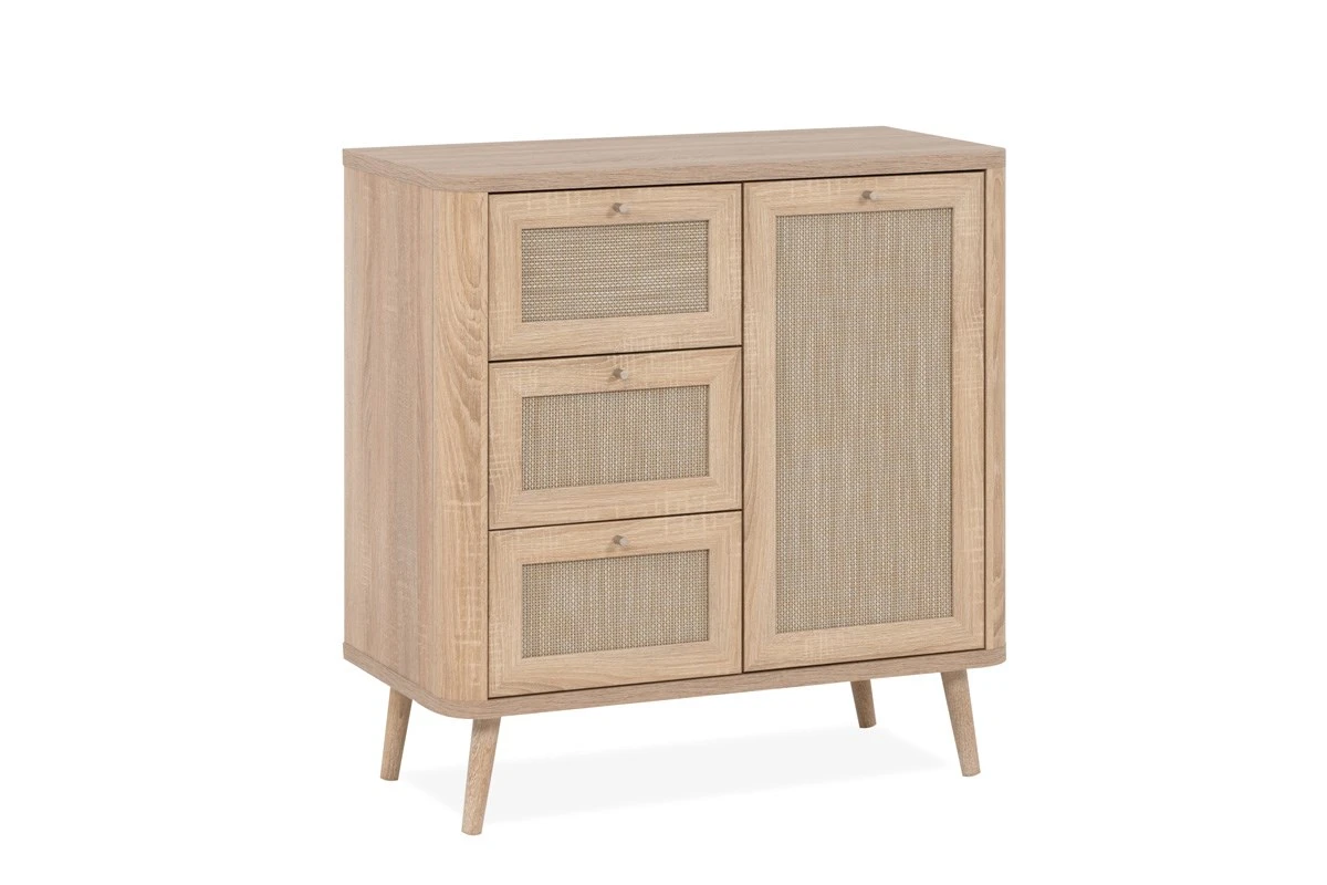 De fantastische commode KUTA heeft 1 deur en 3 laden en is vervaardigd in de kleur Sonoma Oak.