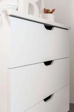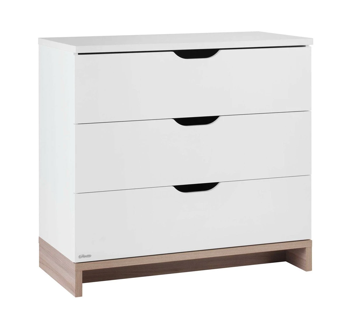 Mooie commode LILO in wit hout decor. De prachtige meubelen uit deze serie zorgen voor een gezellige, zachte sfeer in de babykamer. Combineer deze stijlvolle en praktische commode voorzien van 3 lades met andere meubels uit dezelfde serie.