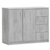 Stevige commode LIVERPOOL met 2 deuren, 2 lades en 2 open vakken gerealiseerd in eiken houtdecor. Combineer de commode met de andere meubelen uit de LIVERPOOL collectie zoals de vele bedden, de kleerkasten, het bureau, de ladenblokken…