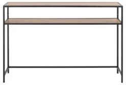 Praktische console SEAFORD gerealiseerd in decor wild oak. Deze zeer esthetische en verfijnde console brengt een designvolle touch aan jouw interieur. Het is een moderne meubel met een industrieel karakter. De console kan op verschillende manieren worden gebruikt, afhankelijk van jouw noden. De console maakt deel uit van de collectie Seaford. De structuur is in zwart metaal, het tafelblad is in MDF eiken kleur.
