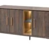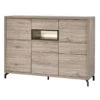 Sublieme en klassieke dressoir, voorzien van 4 deuren en 2 lades, met heel wat karakter dankzij de stijlvol afgewerkte deuren. Deze dressoir behoort tot de woonkamer EMMA die gerealiseerd is in decor imitatie hout waardoor het een warme uitstraling aan jouw interieur geeft.
