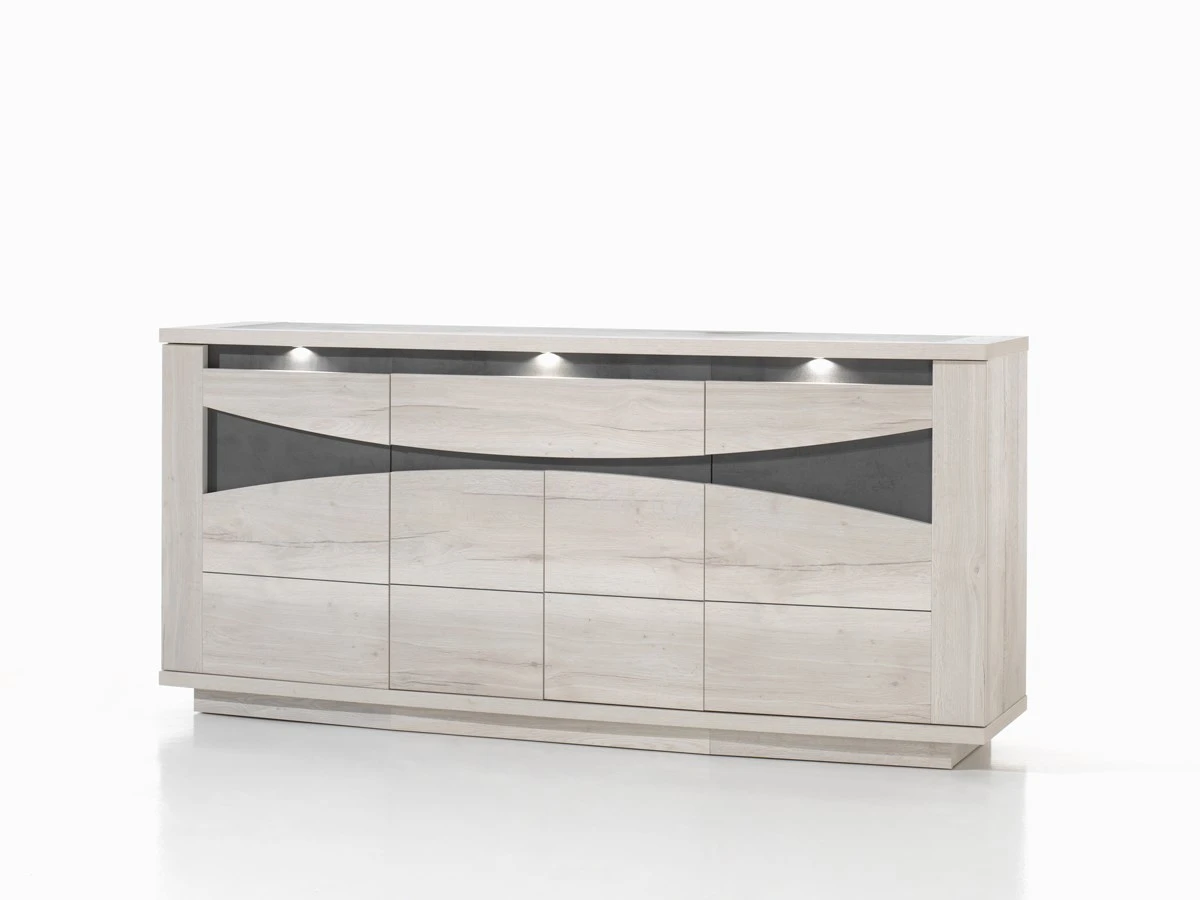 De RINUS buffetkast met zijn tweekleurige accent past met zijn trendy look bij uw interieur