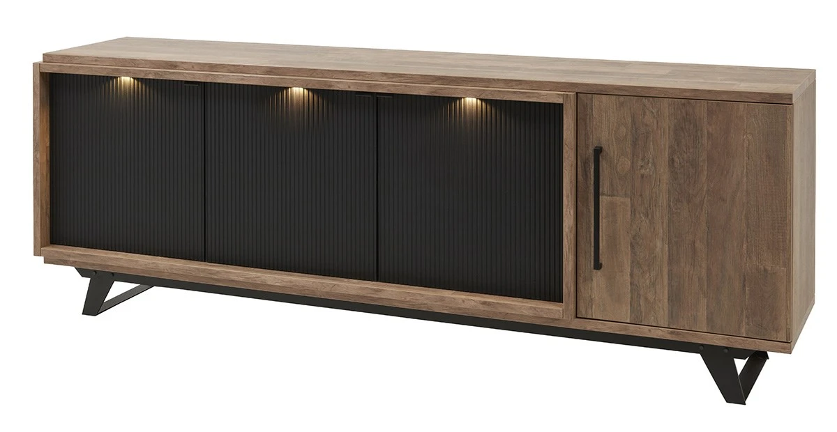 De prachtige dressoir TRENTINO 231cm heeft 4 deuren. Met zijn kleur old teak en matzwarte details, past hij makkelijk in elk modern interieur.