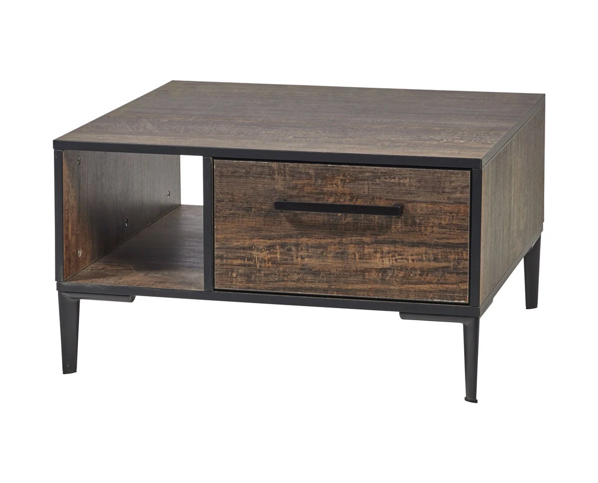 Prachtige hoektafel PERUGIA met een natuurlijk karakter dankzij haar afwerking in melamine hout, gecombineerd met mat zwarte details. De metalen poten zorgen voor een stijlvolle toets. Combineer dit leuk bijzettafeltje met andere meubelen uit dezelfde reeks.