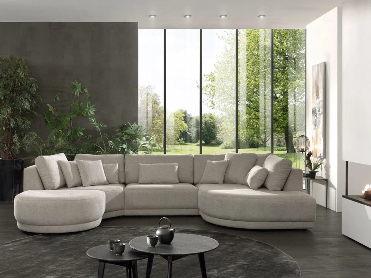 Stof, Grijs, Poef N55, Hoekelement N05, Groot Element N70, HRC Rechts N12, 210 x 355 x 197