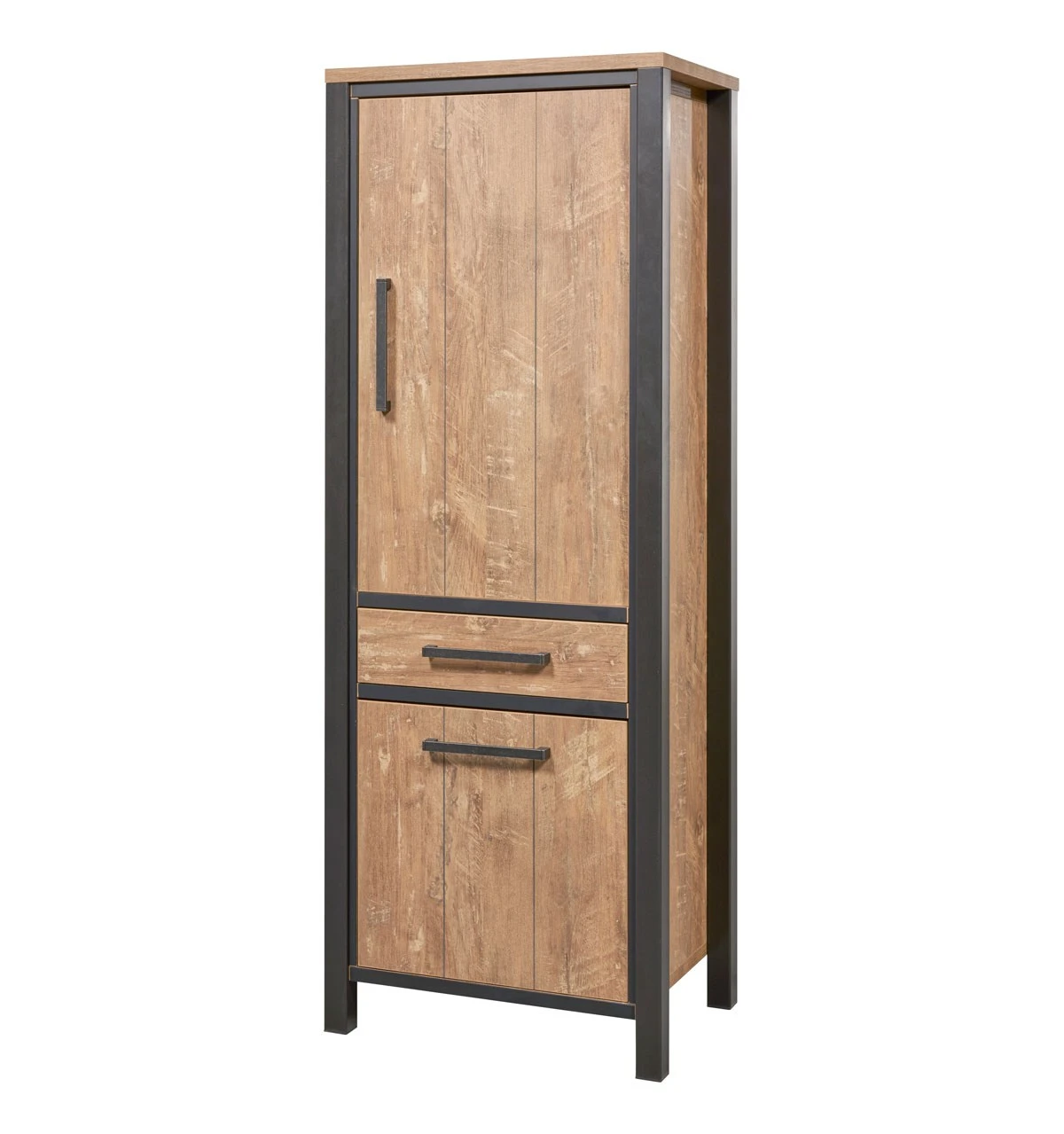 Prachtige colonne LOVINA met een natuurlijk karakter dankzij haar afwerking in melamine hout, gecombineerd met mat zwarte details en handgrepen. De barkast heeft 2 deuren en 1 lade. De metalen poten zorgen voor een stijlvolle toets.
