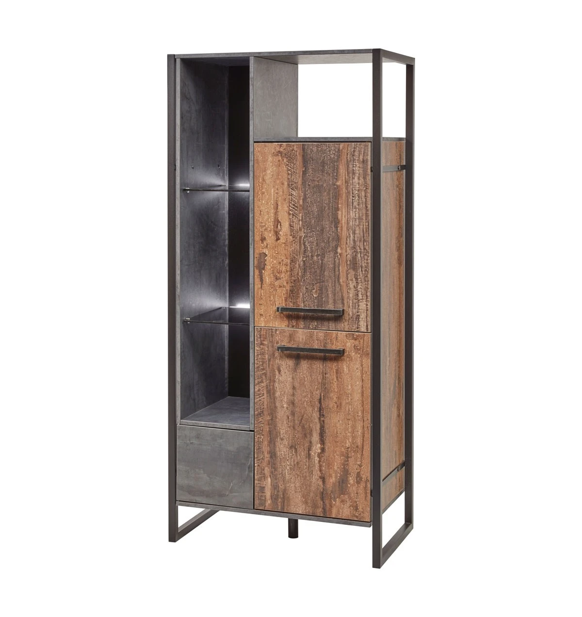 Een kolomkast bar die zowel sober als elegant is dankzij de eigentijdse industriële stijl. Hij heeft 2 houten deuren en veel planken. De collectie SAMIR combineert hout en staal om karakter te geven aan jouw interieur.