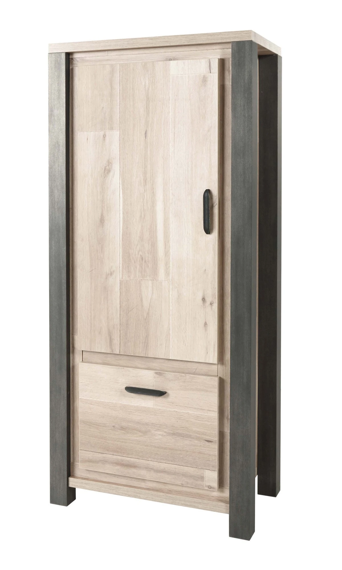 Deze smalle kolomkast TOMBA, gerealiseerd in melamine eikenhout, heeft een industrieel karakter dankzij haar stalen accenten, tegenwoordig erg trendy! Combineer de kolomkast bar Tomba, voorzien van 2 deuren, met de andere meubels uit dezelfde serie.
