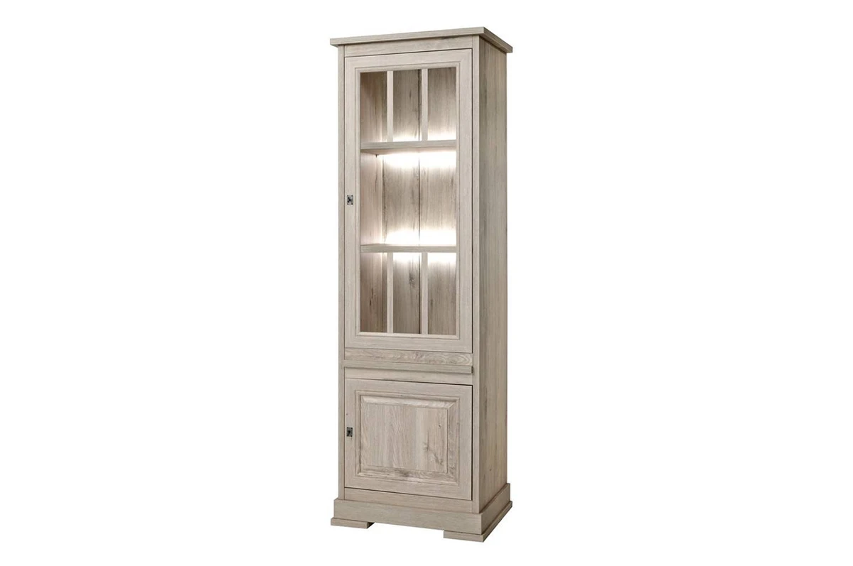 Praktische, smalle vitrine of kolomkast die behoort tot de woonkamer KENT, gerealiseerd in melamine imitatie hout. Bovendien vult Kent de leefruimte met een warme sfeer. Combineer deze vitrinekast met andere meubelen uit dezelfde serie.