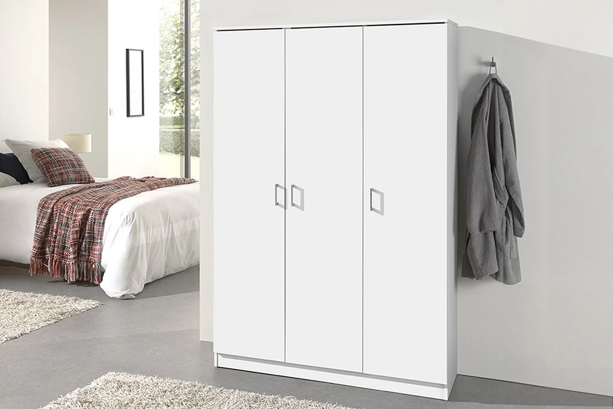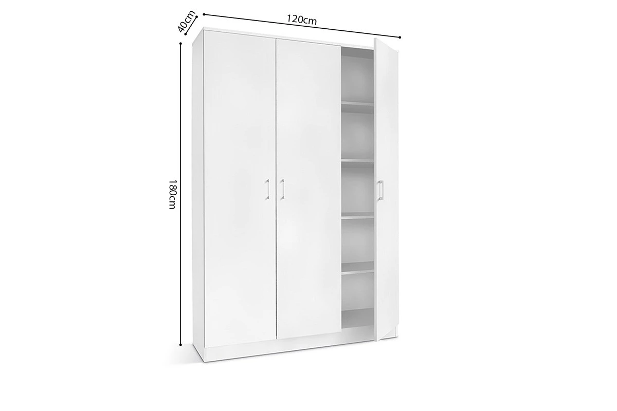 De 3-deurs kast RAY 6410-1 in witte kleur is voorzien van 8 legplanken. Ideaal voor elk type opberging. Mogelijk in meerdere kleuren.