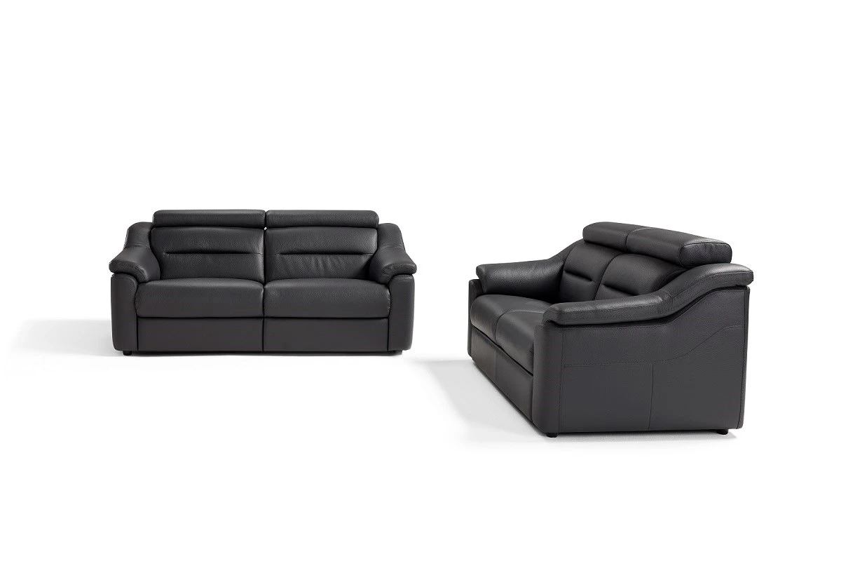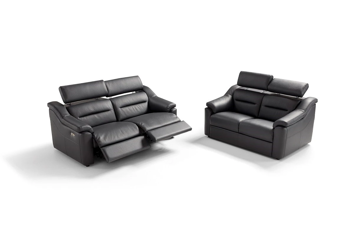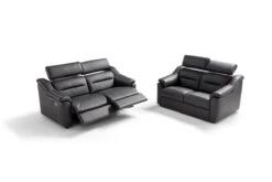 De stijlvolle salon BELLE is gemaakt in p3 leder en zorgt voor een klassevolle, chique sfeer in huis. Deze salon heeft niet enkel een mooi design, maar ook een heel comfortabel gevoel. Deze set bestaat uit een grote 2-zit met 2 elektrische relaxzetels en elektrische hoofdsteunen en een vaste 2-zit met manuele hoofdsteunen.