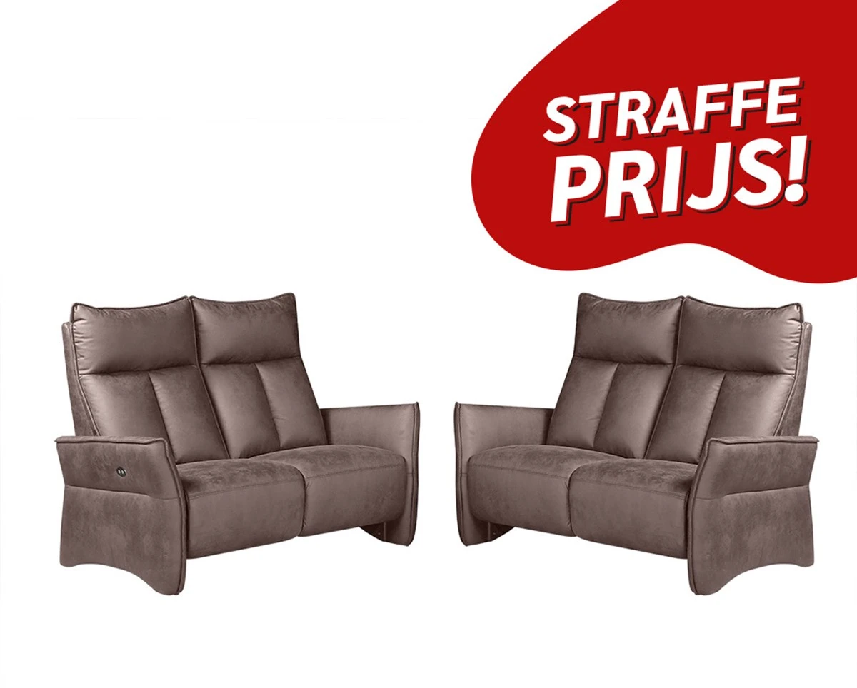 Op zoek naar straf zitcomfort? Kies dan voor de salon IMPERIAL in elephant stoffen bekleding. Comfort en stijl, perfect om te genieten van goede tijden. De salon bestaat uit een 2-zit met elektrische relaxen en een 2-zit vast.