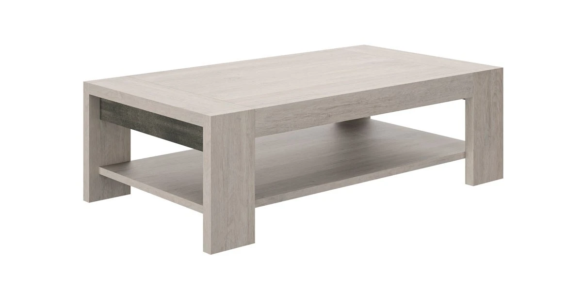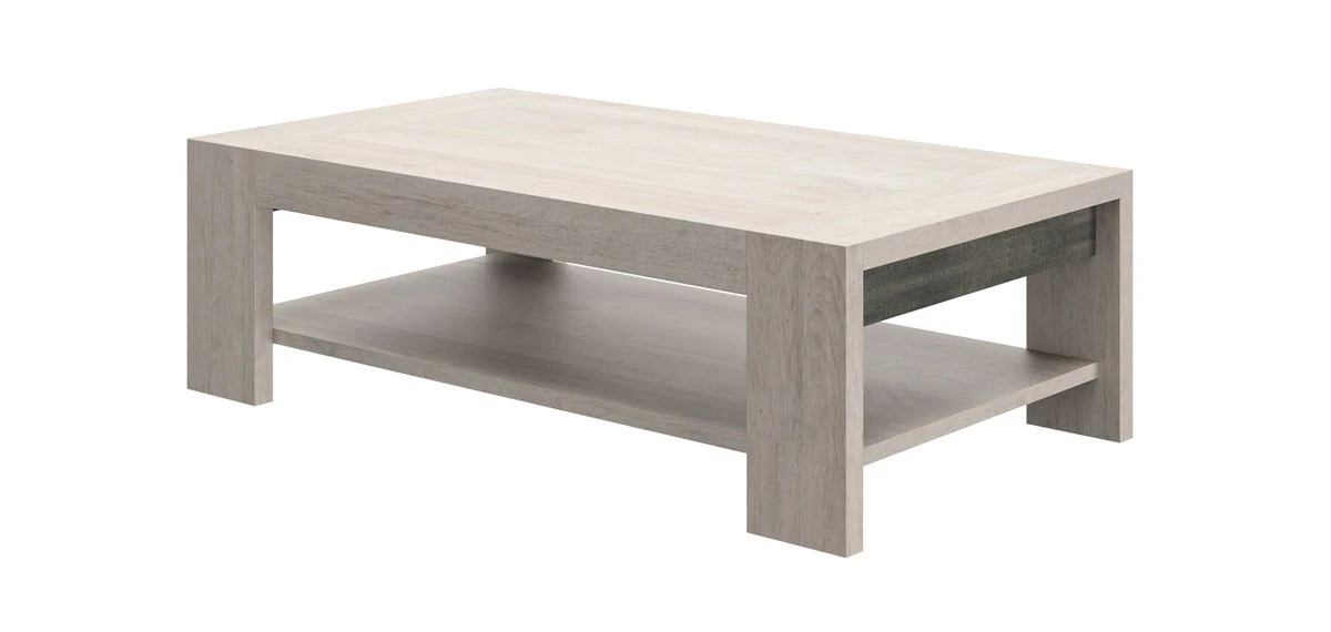 Deze mooie rechthoekige salontafel behoort tot de woonkamer BOSTON, een stijlvolle collectie met meubelen gerealiseerd in imitatie decor grijs eikenhout. Combineer de salontafel Boston met andere meubelen uit dezelfde serie.