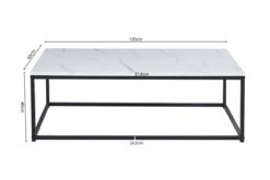 Deze rechthoekige salontafel DALLAS staat geweldig in elke woonkamer. De combinatie van wit marmer en zwart metaal van het onderstel zorgt voor een zeer stijlvolle tafel. Zijn ruim tafelblad van 120 x 60 cm maakt het gemakkelijk om een vaas, afstandsbediening, krant… op te plaatsen. Ook verkrijgbaar in andere kleuren.