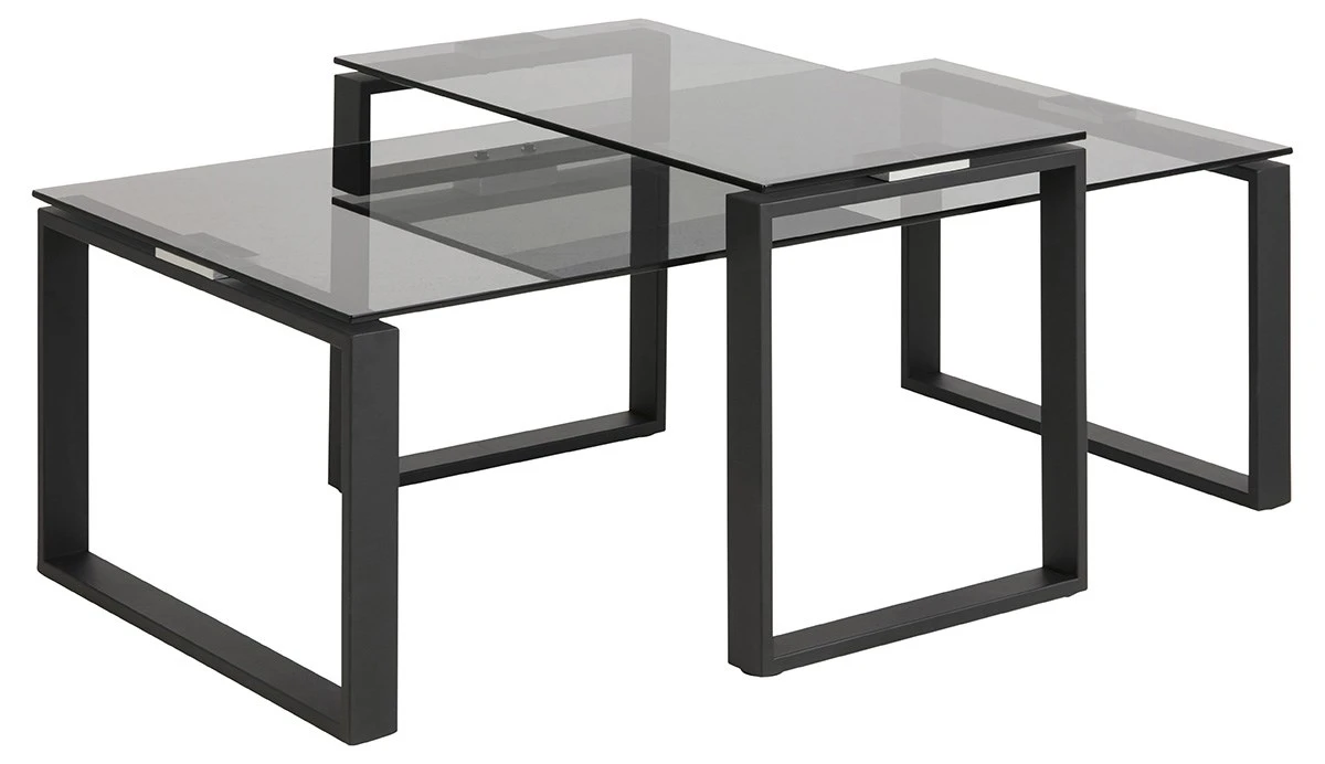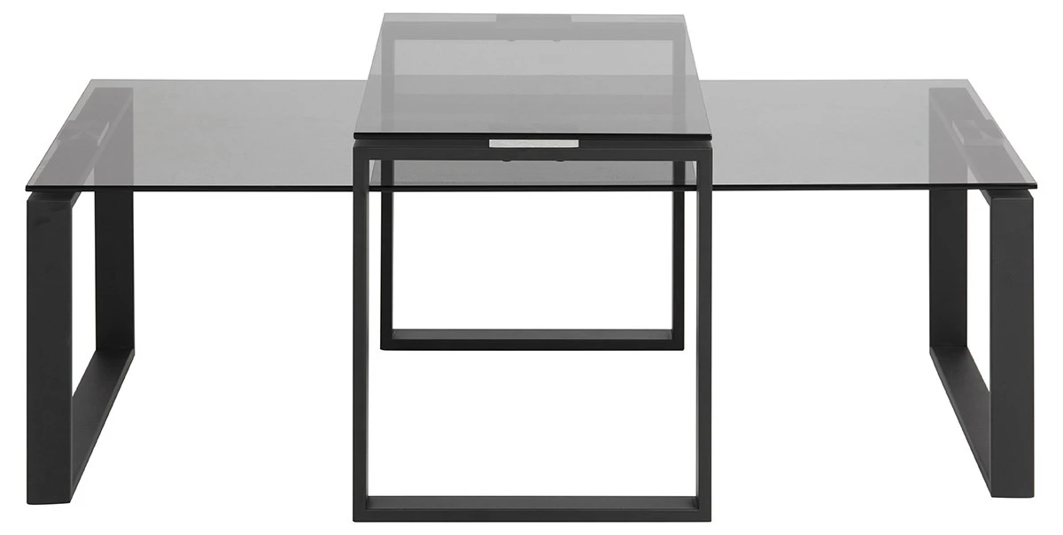 Een mooie set van twee moderne tafels in rookglas erg praktisch voor in je interieur