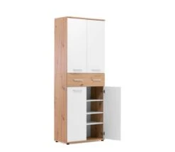 Praktische schoenenkast JACKY 42 in decor eikenhout die je voor allerlei doeleinden kan gebruiken zoals bijvoorbeeld het opbergen van schoenen.