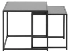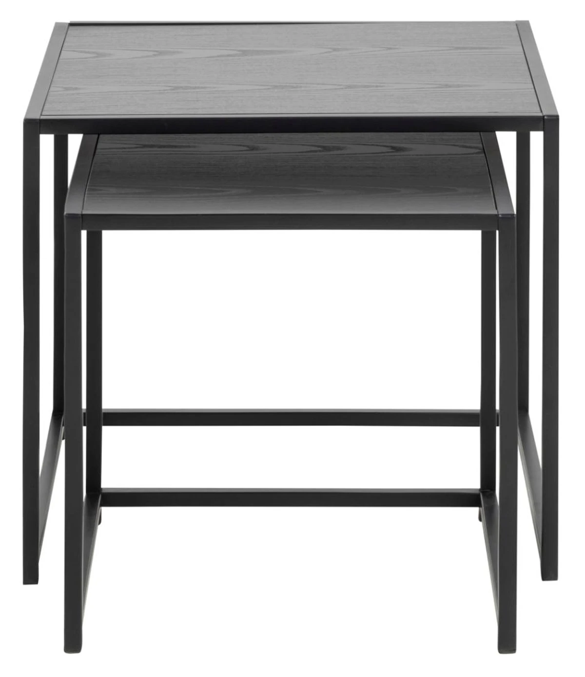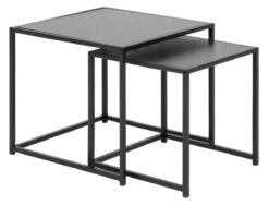 De set SEAFORD 90955 bestaat uit 2 praktische bijzettafels gerealiseerd in melamine ash black. Dankzij zijn gepoedercoat metalen onderstel hebben deze bijzettafels een stoere, industriële uitstraling.