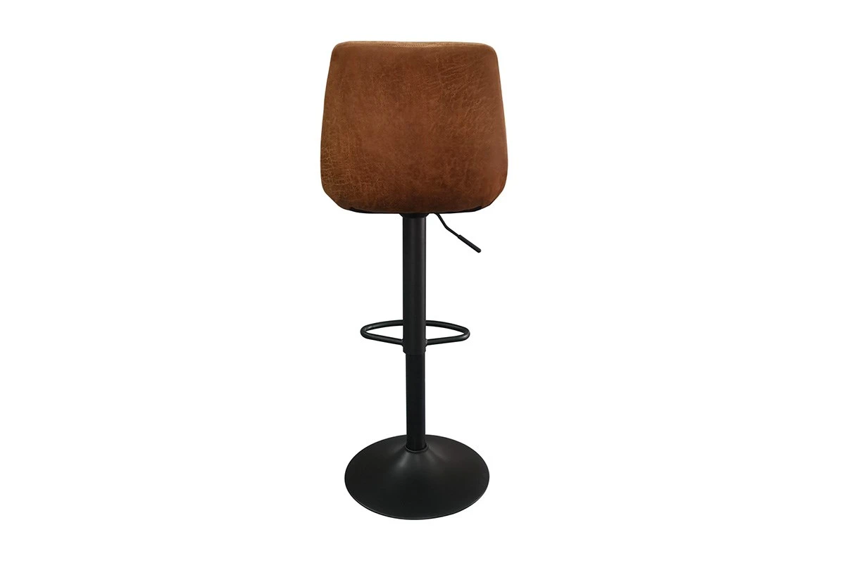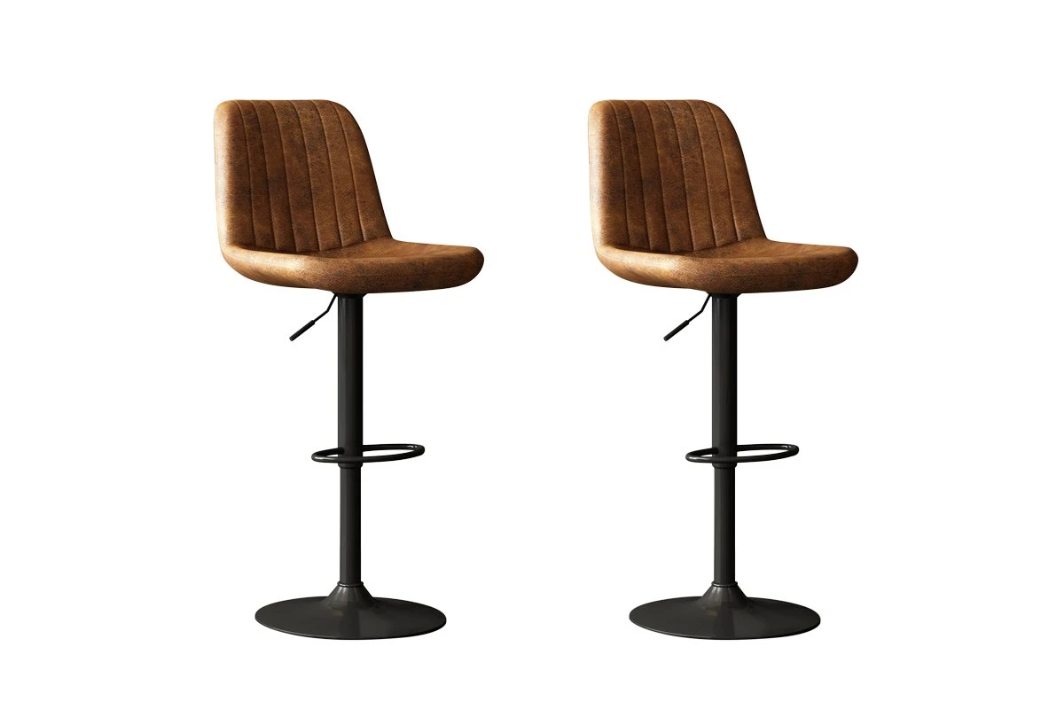 Aantrekkelijke set van 2 barstoelen BARCELONA van cognackleurig kunstleder. Met in hoogte verstelbare matzwarte metalen poten.