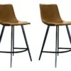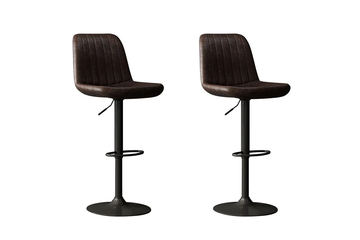 Aantrekkelijke set van 2 barstoelen BARCELONA van donkerbruinkleurig kunstleder. Met in hoogte verstelbare matzwarte metalen poten.