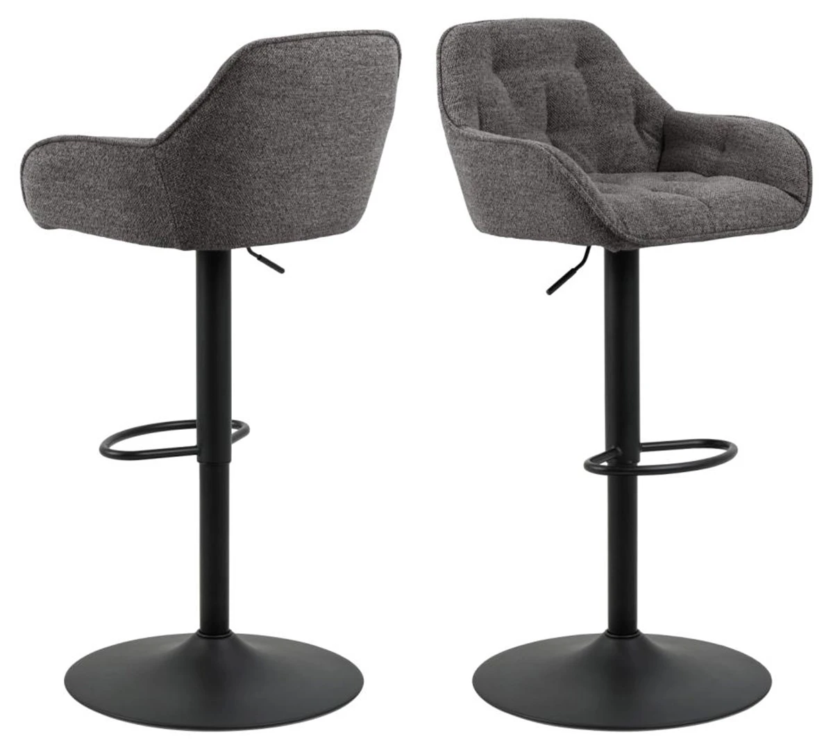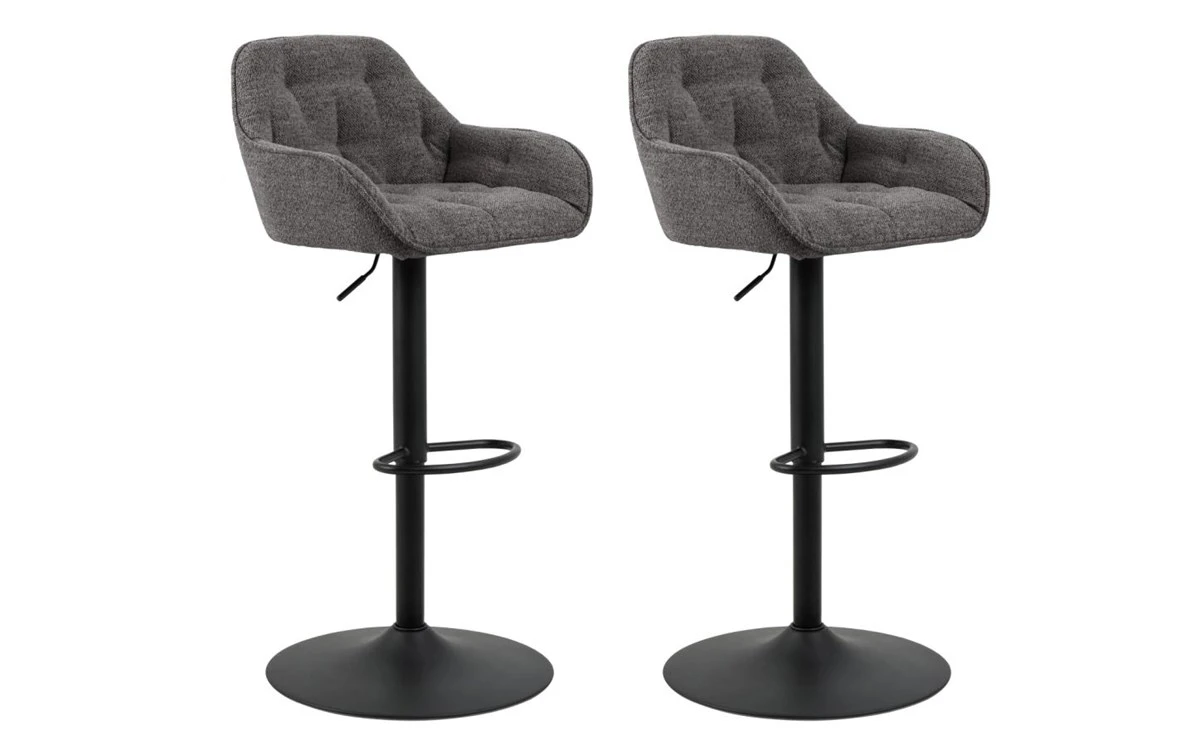 Voeg karakter toe aan uw woonkamer met het tijdloze silhouet van de set van 2 barstoelen BROOKE. Met zijn antraciet bekleding en zwarte poot, is hij ideaal voor een lang diner.
