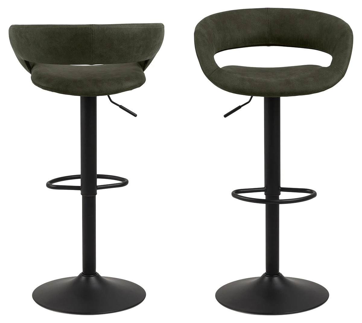 Set van 2 barstoelen GRACE met moderne en eigentijdse uitstraling. Verstelbare zithoogte. Trompetvormige voet zorgt voor een goede stabiliteit.