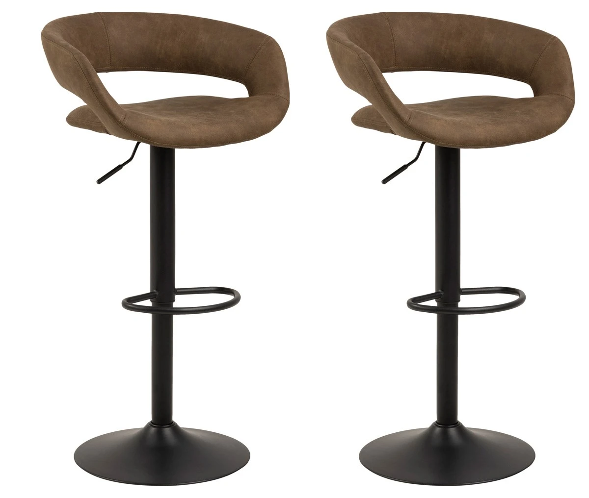 Set van 2 barstoelen GRACE met moderne en eigentijdse uitstraling. Verstelbare zithoogte. Trompetvormige voet zorgt voor een goede stabiliteit. Gerealiseerd in light brown.