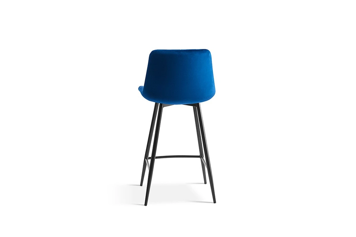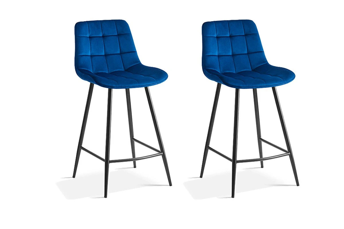 Leuke set van 2 barstoelen JUTA die perfect staan in elk interieur. De barstoelen zijn gerealiseerd in blauwe stof gecombineerd met zwarte metalen poten. Verkrijgbaar in meerdere kleuren.