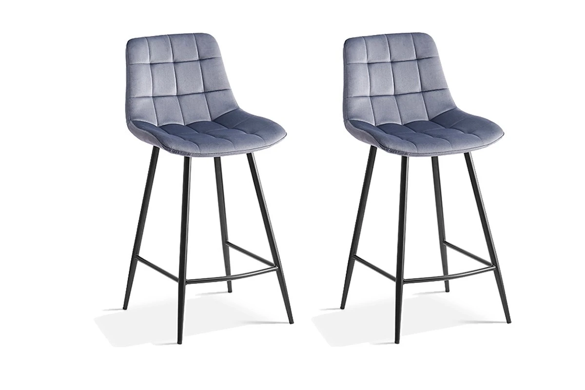 Leuke set van 2 barstoelen JUTA die perfect staan in elk interieur. De barstoelen zijn gerealiseerd in donkergrijze stof gecombineerd met zwarte metalen poten. Verkrijgbaar in meerdere kleuren.