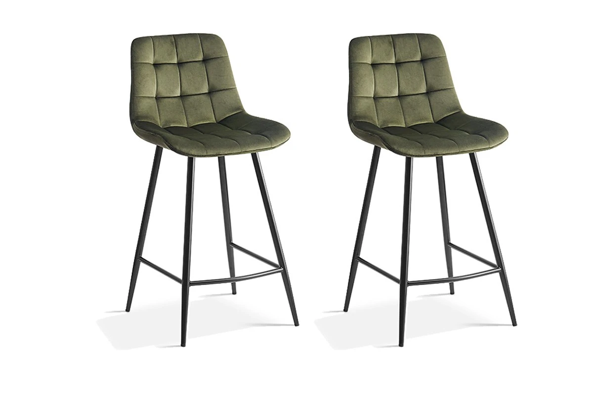 Leuke set van 2 barstoelen JUTA die perfect staan in elk interieur. De barstoelen zijn gerealiseerd in groene stof gecombineerd met zwarte metalen poten. Verkrijgbaar in meerdere kleuren.