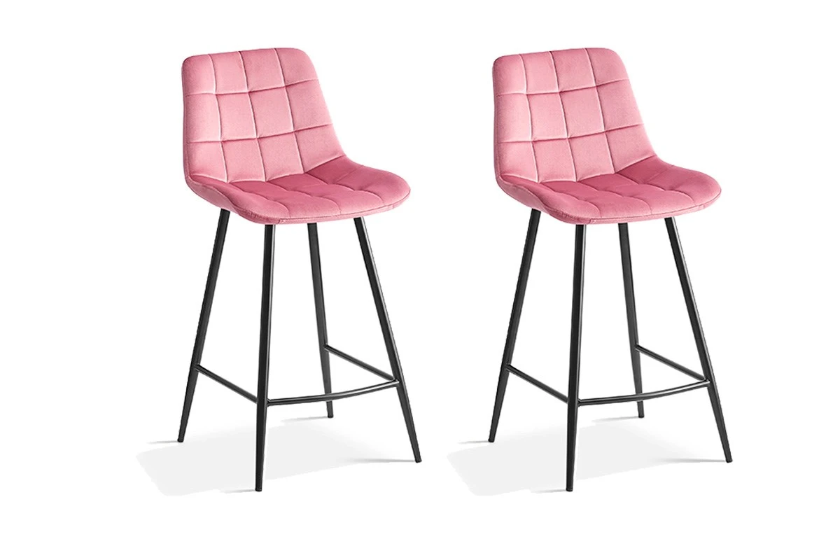 Leuke set van 2 barstoelen JUTA die perfect staan in elk interieur. De barstoelen zijn gerealiseerd in roze stof gecombineerd met zwarte metalen poten. Verkrijgbaar in meerdere kleuren.