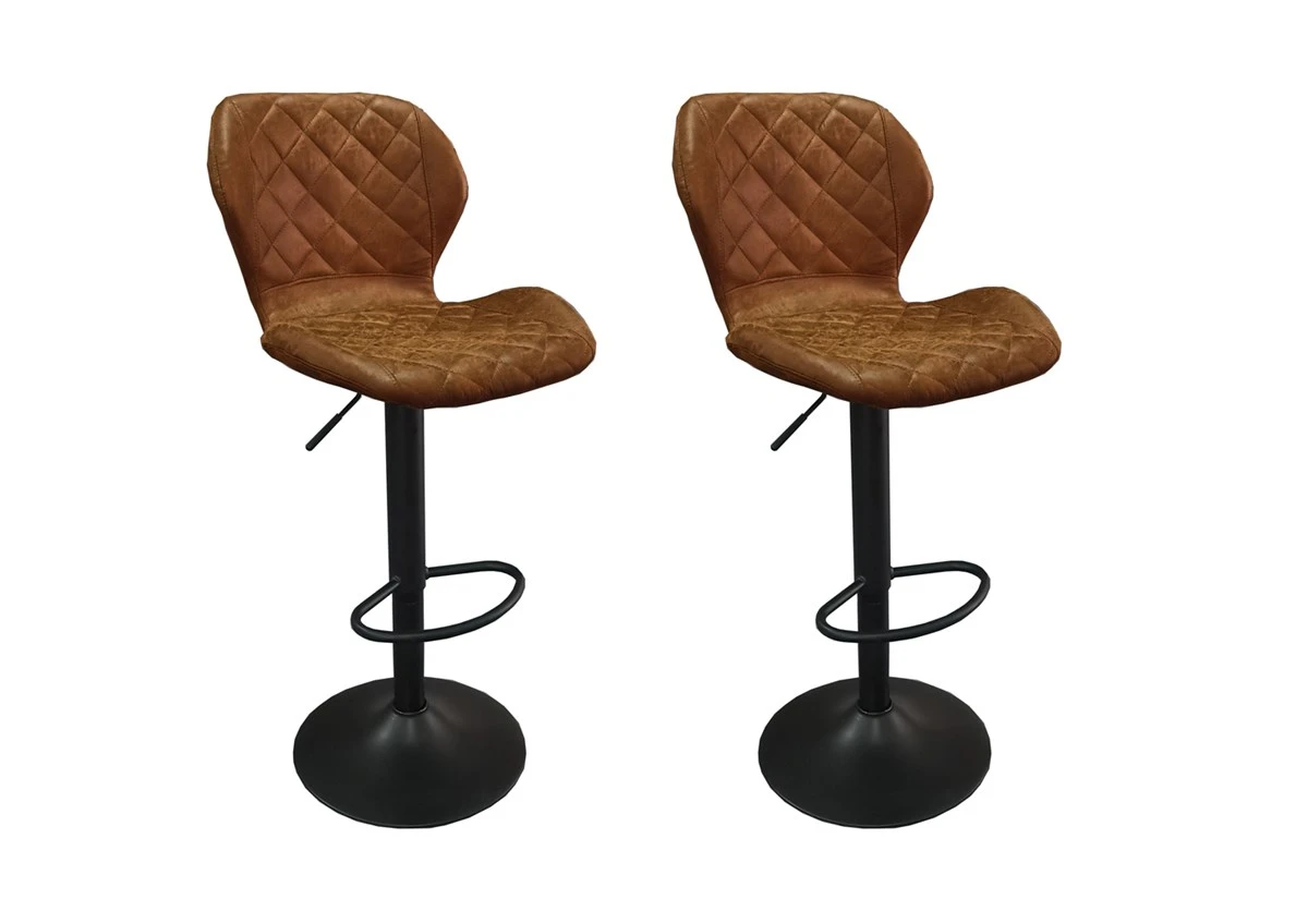 Set van 2 barstoelen MALAGA 5590 in kunstleder cognac. Mogelijk in verschillende kleuren. Verkocht per set van 2 barstoelen.
