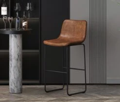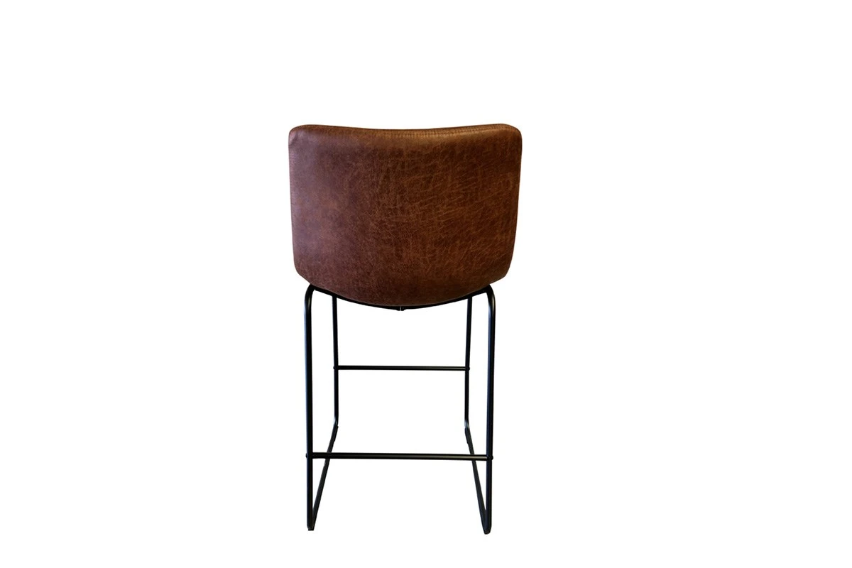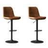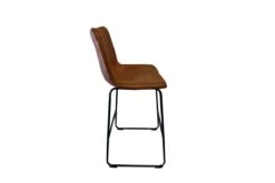 Prachtige set van 2 barstoelen MANCIA 5610 in cognac kunstleer. Met zijn zichtbare stiknaden en zwarte metalen poot haal je de industriële geest in huis!